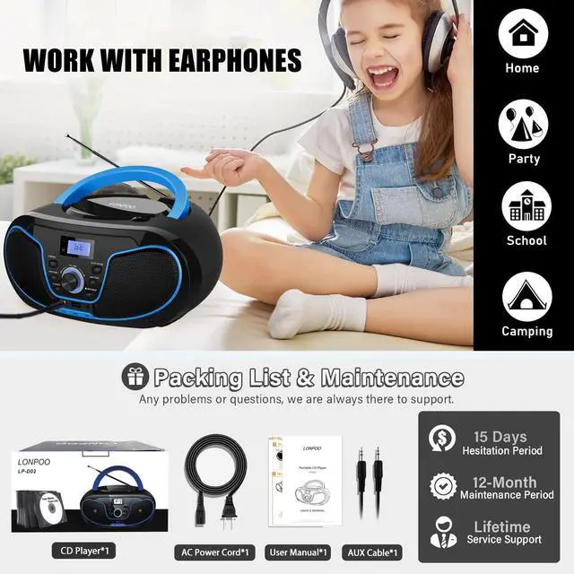 LONPOO LP-D02 PORTABLE CD BOOMBOX