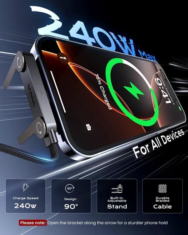 Our 240w stand data cable is USB-C to USB-C and is suitable for devices with USB-C interfaces. If your phone uses the Lightning interface, please use a USB-C to Lightning adapter.