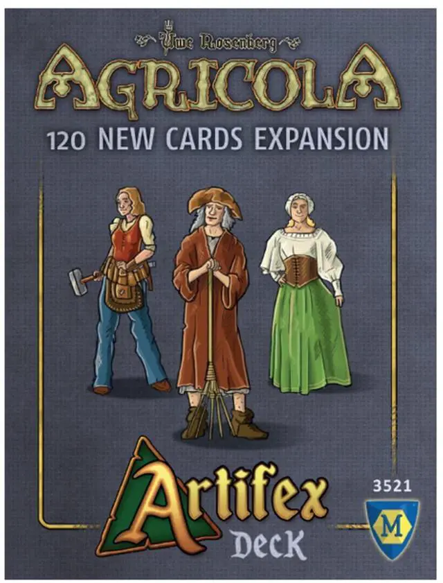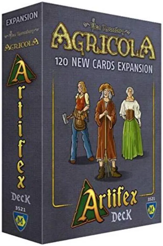 120 new cards for Agricola! 60 new minor improvements and 60 occupations that you can play on their own or combine with other decks. The base game rules remain unchanged. Note the clarifications on the sides of the box. Playable with up to 6 players when using the Expansion for 5 and 6 players!