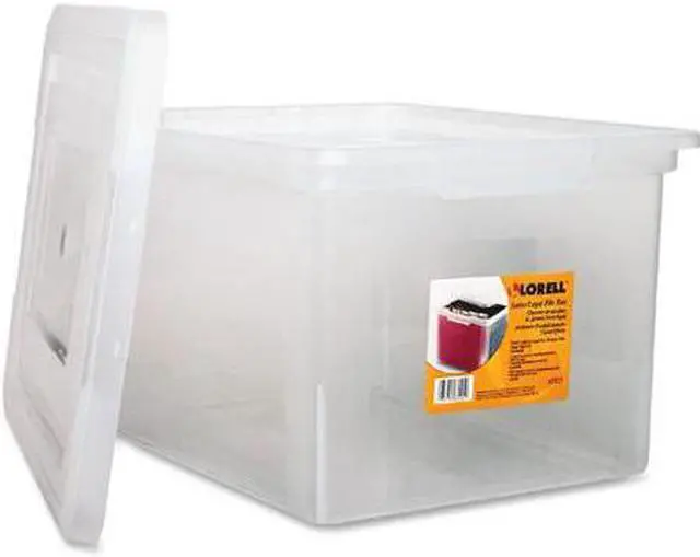 Stacking file box offers a reliable choice for your file storage needs. Use file box to store either letter-size or legal-size hanging files. Interlocking lid snaps tight for secure stacking of multiple units. File box is made of clear plastic so you can easily identify the contents. More from the Manufacturer