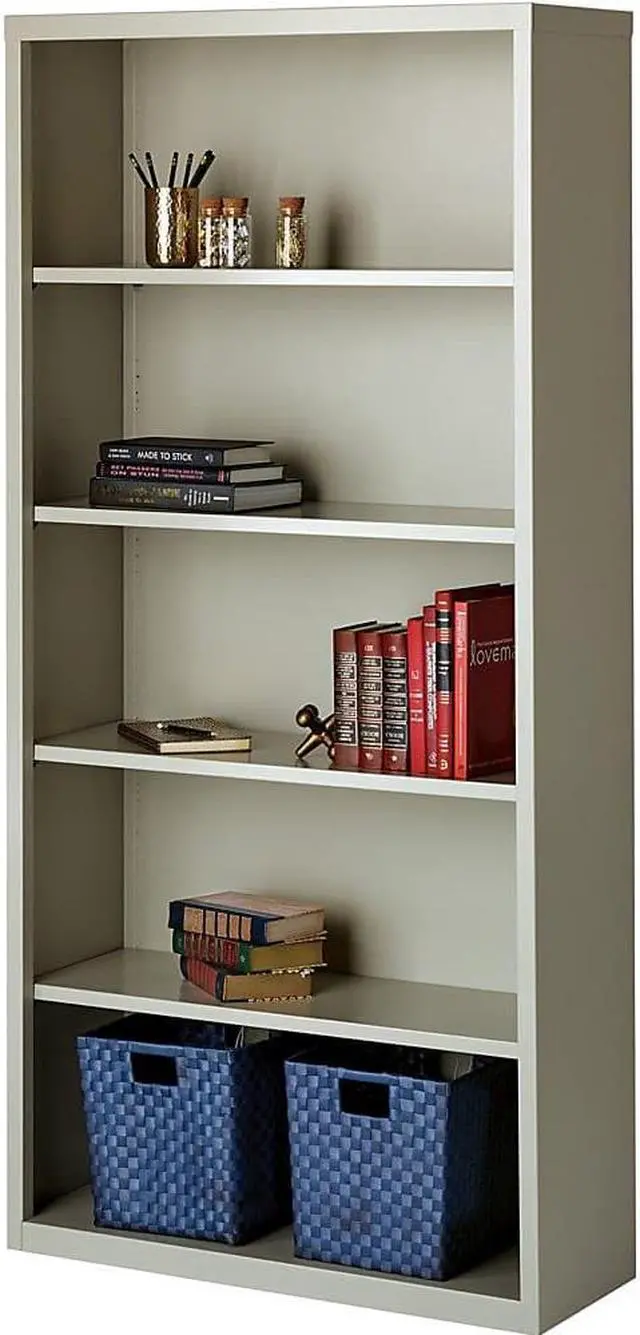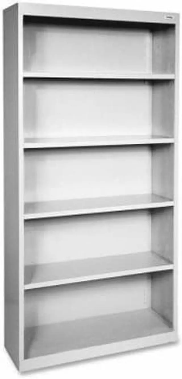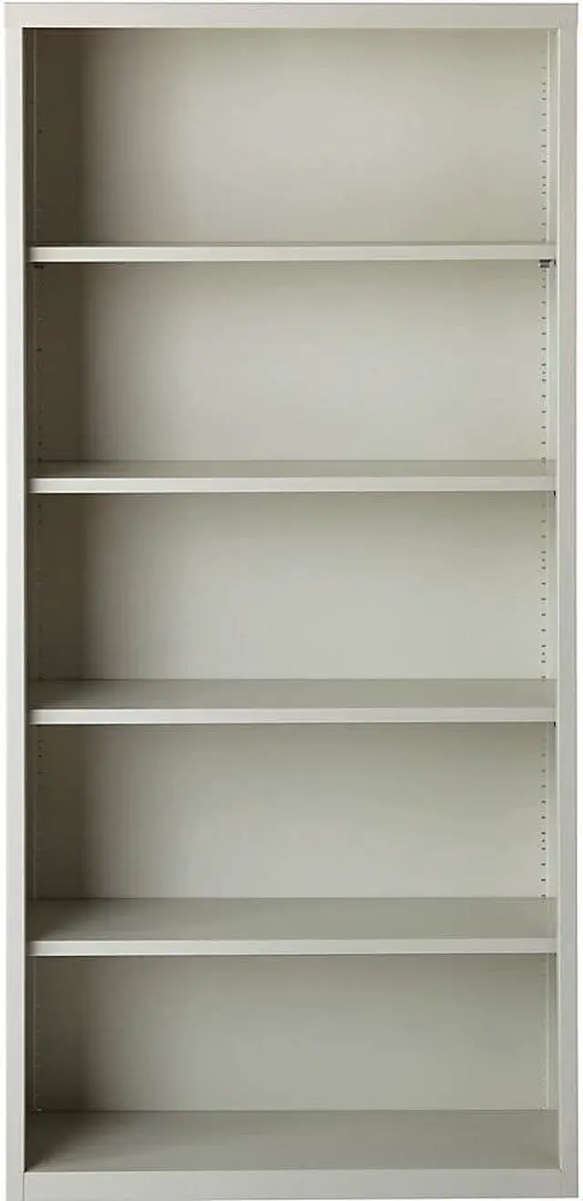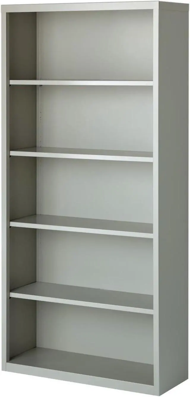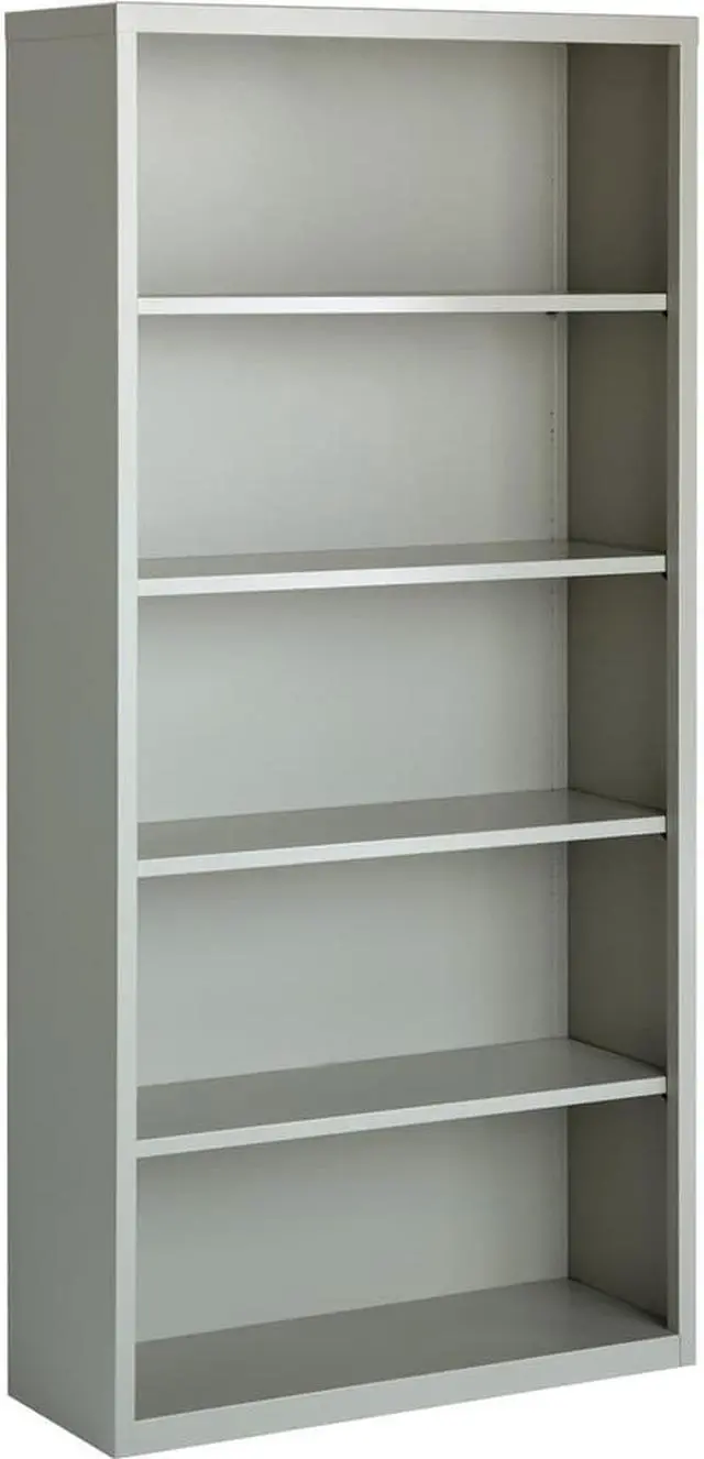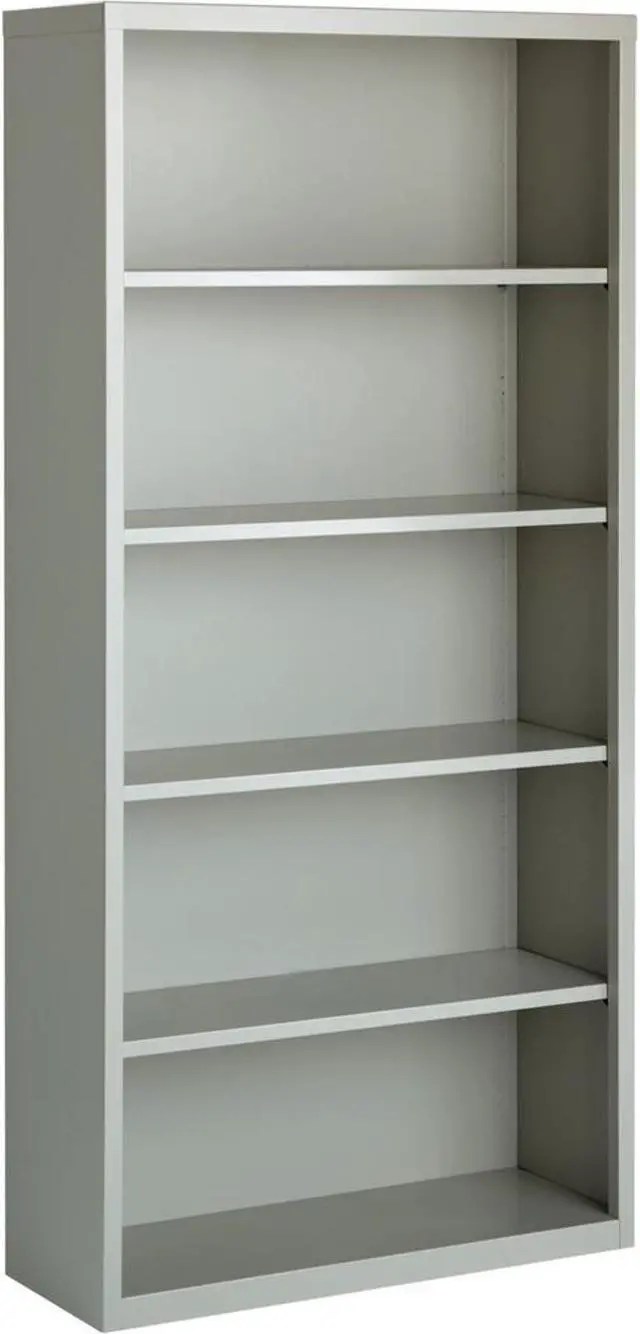 Durable fully welded steel Bookcase in light gray finish.