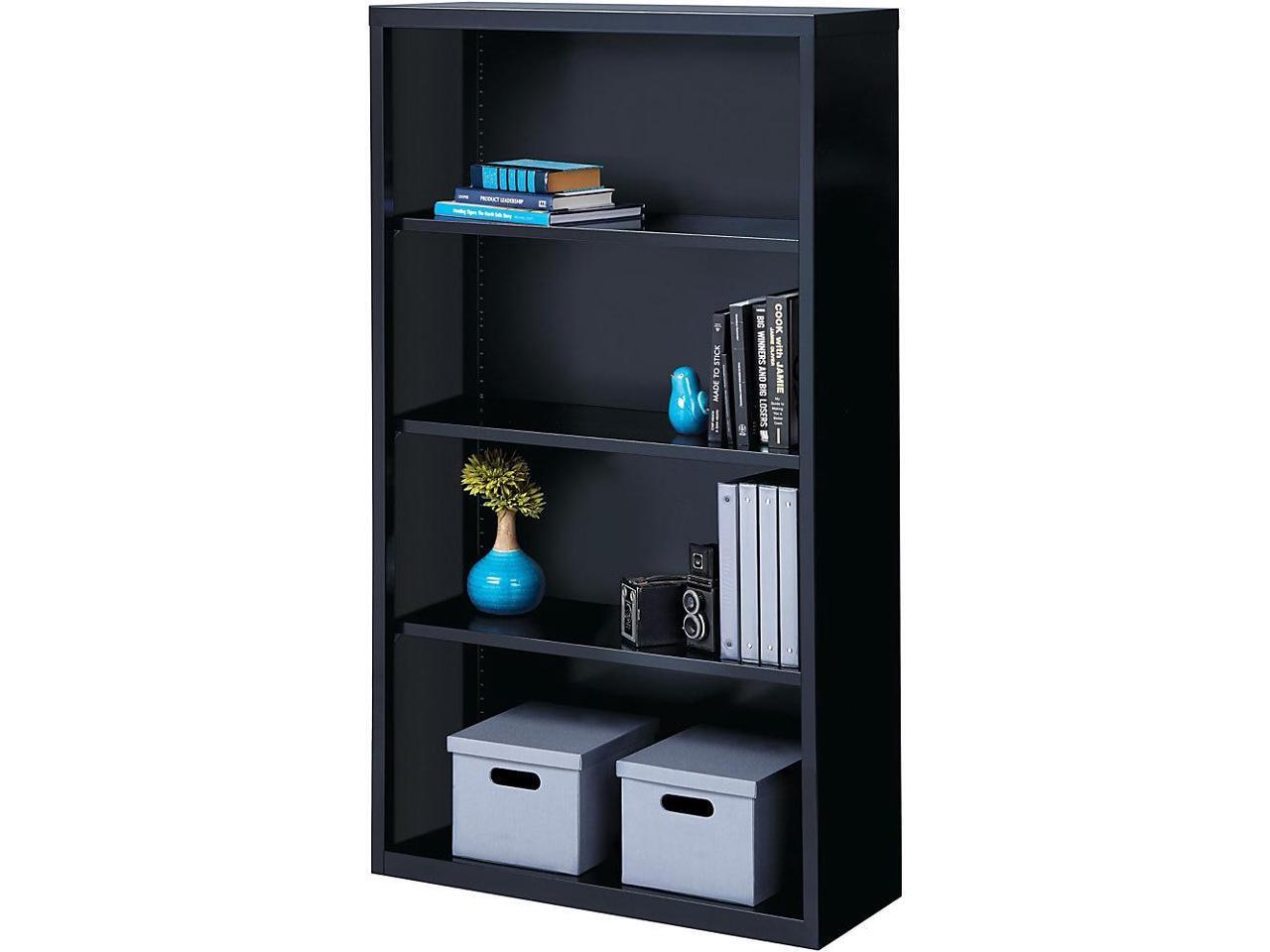 Durable fully welded steel Bookcase in Black baked enamel finish. Durable fully welded construction. No assembly required. Welded steel construction with a powder-coat finish for d...
