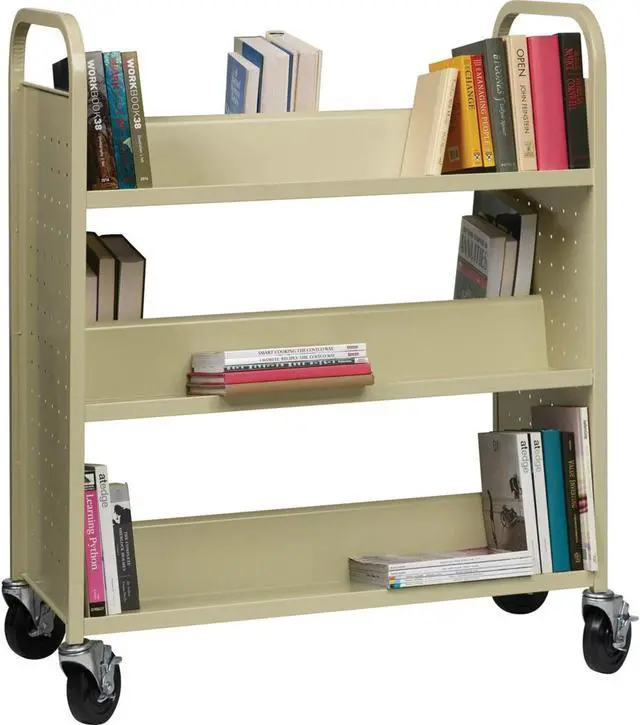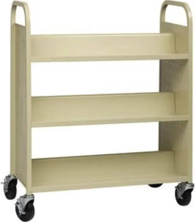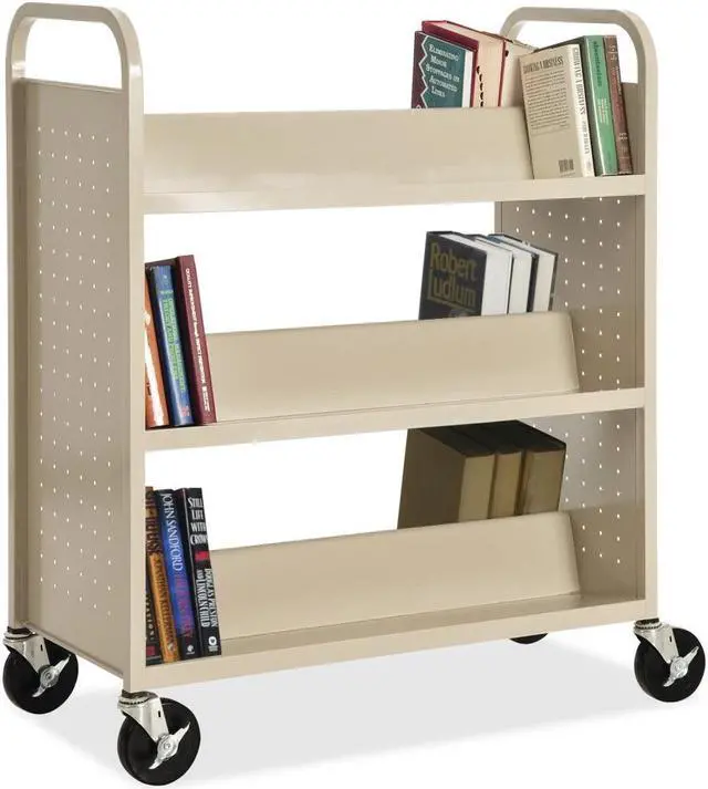 Lorell Double-sided Book Cart Slanted 6-shelf 39"x19"x46" Putty 49202