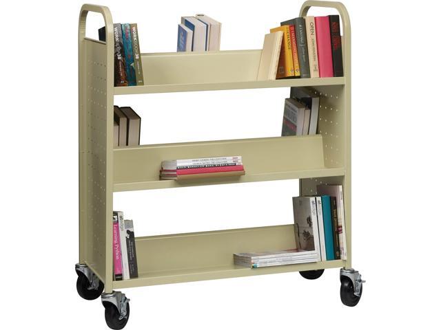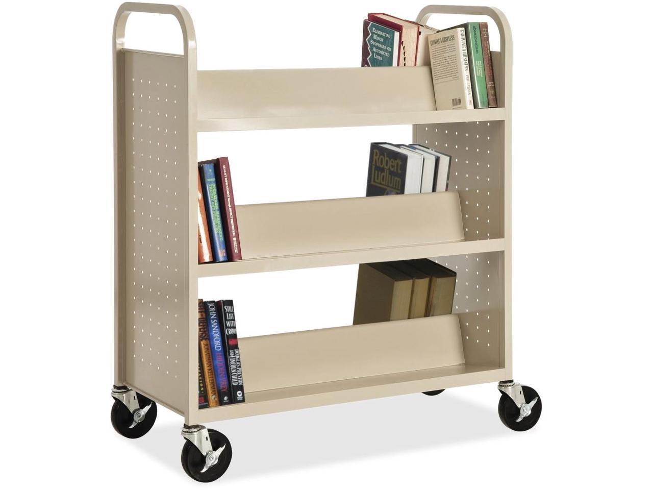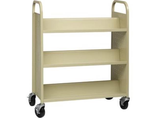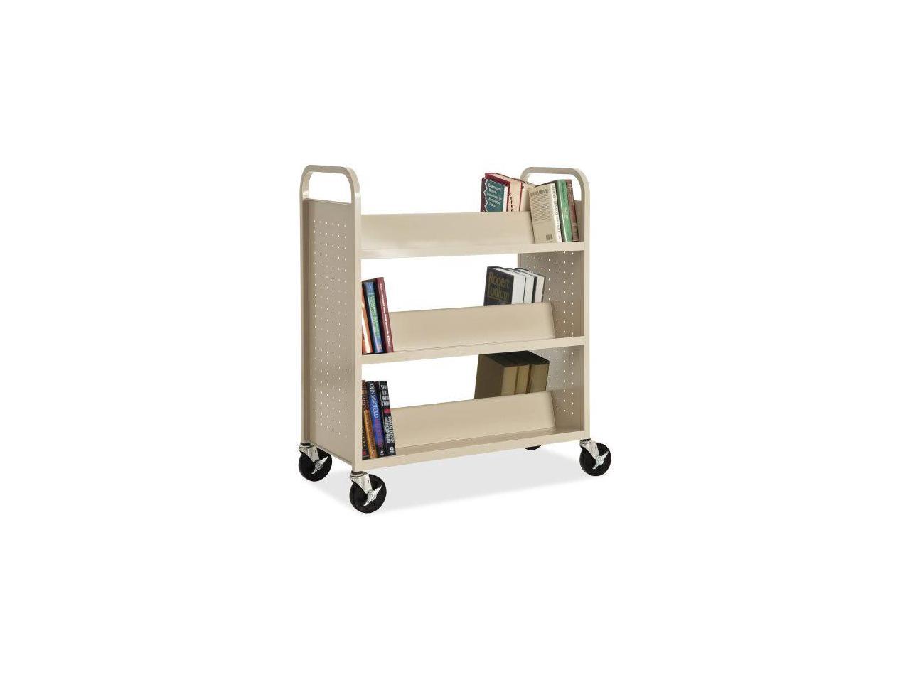 Lorell Double-sided Book Cart Slanted 6-shelf 39"x19"x46" Putty 49202
