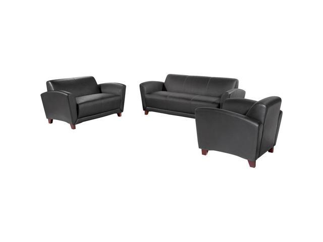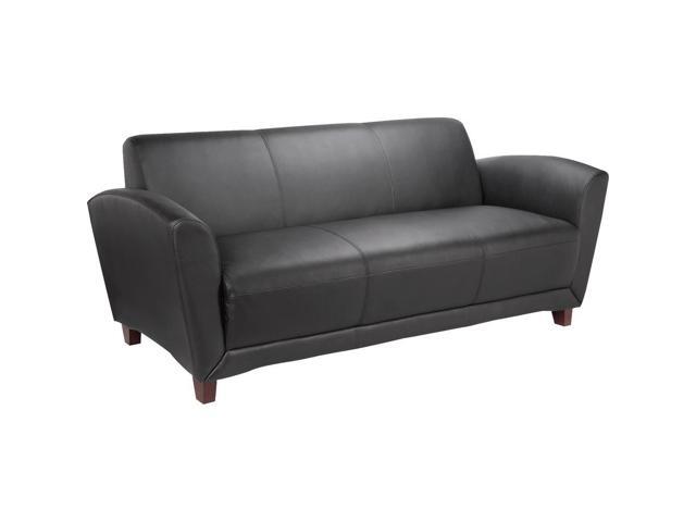 Lorell Reception Sofa 75"x34-1/2"x31-1/4" Black Leather 68950