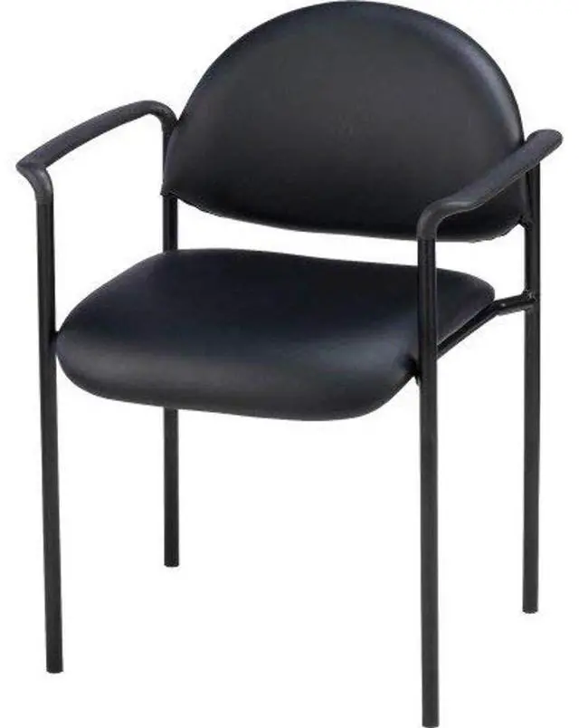 - Reception guest chair features a seat and back with vinyl upholstery and molded plastic arms.