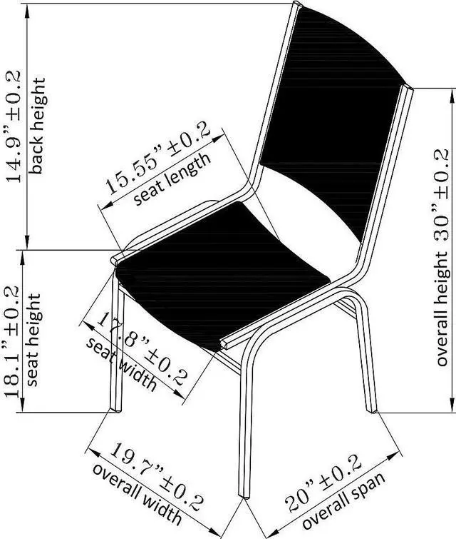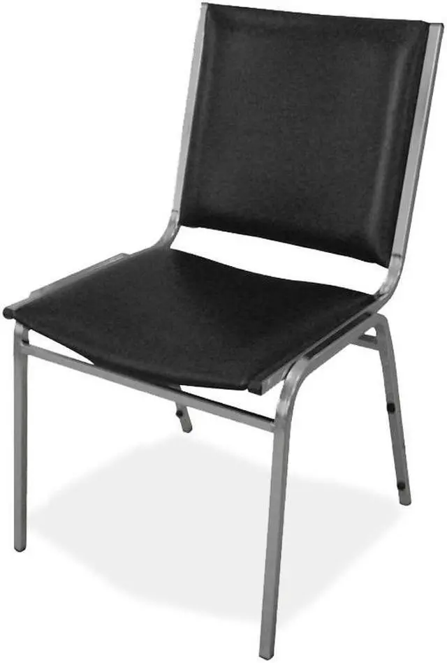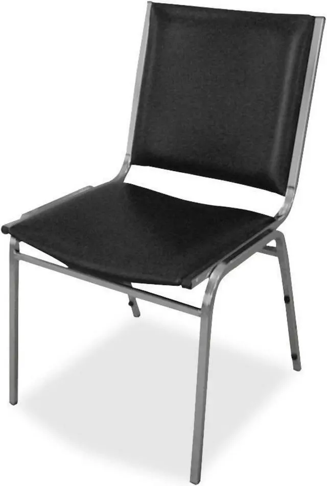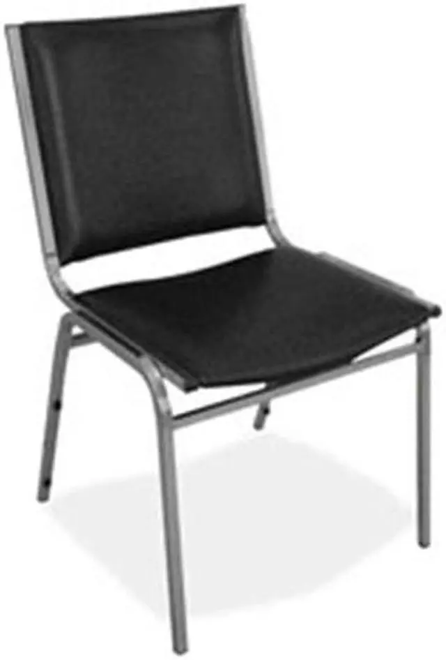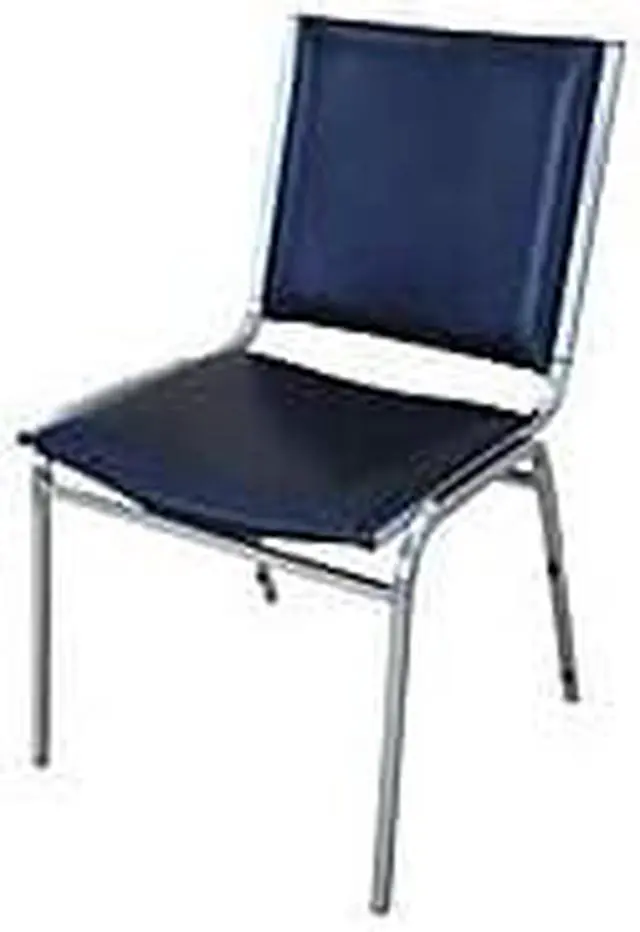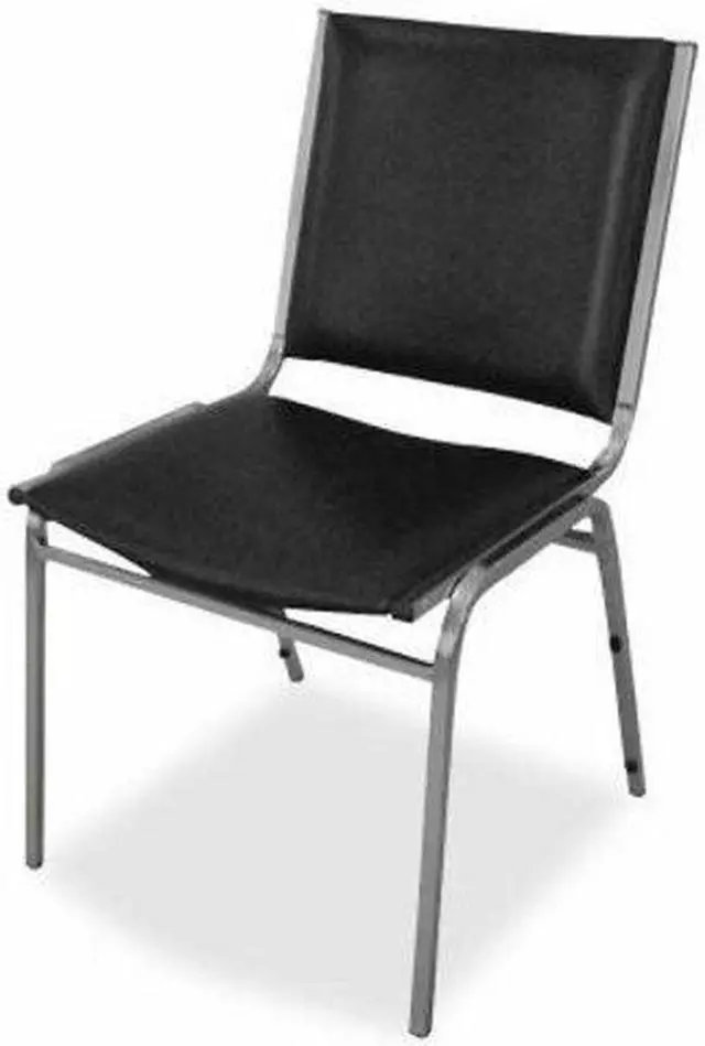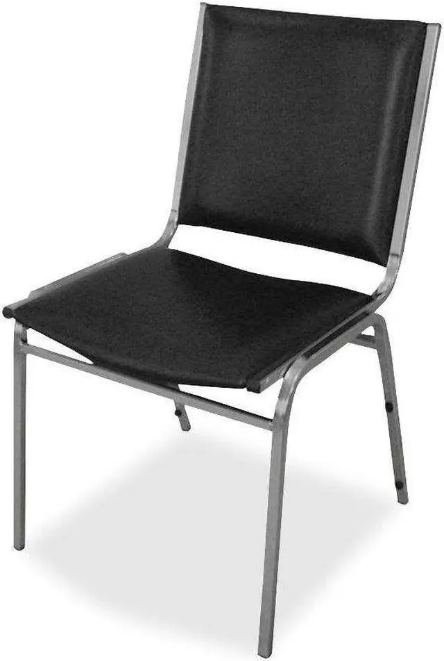 Stacking chairs with no arms feature padded vinyl on the seats and square backs. Sturdy, 7/8" tubular steel frame on each chair holds up to 250 lb. Chairs stack up to eight high.