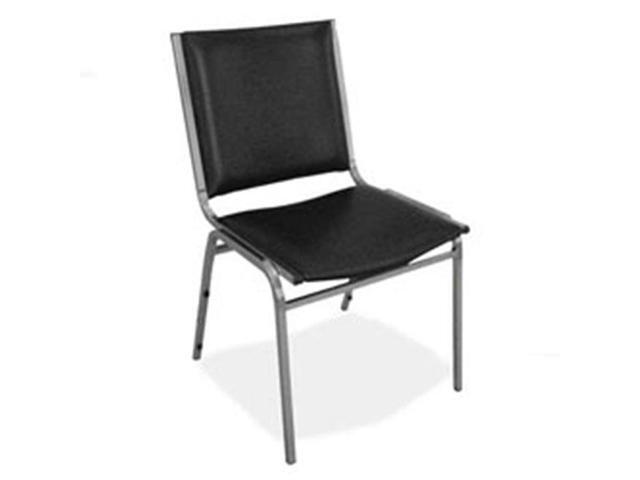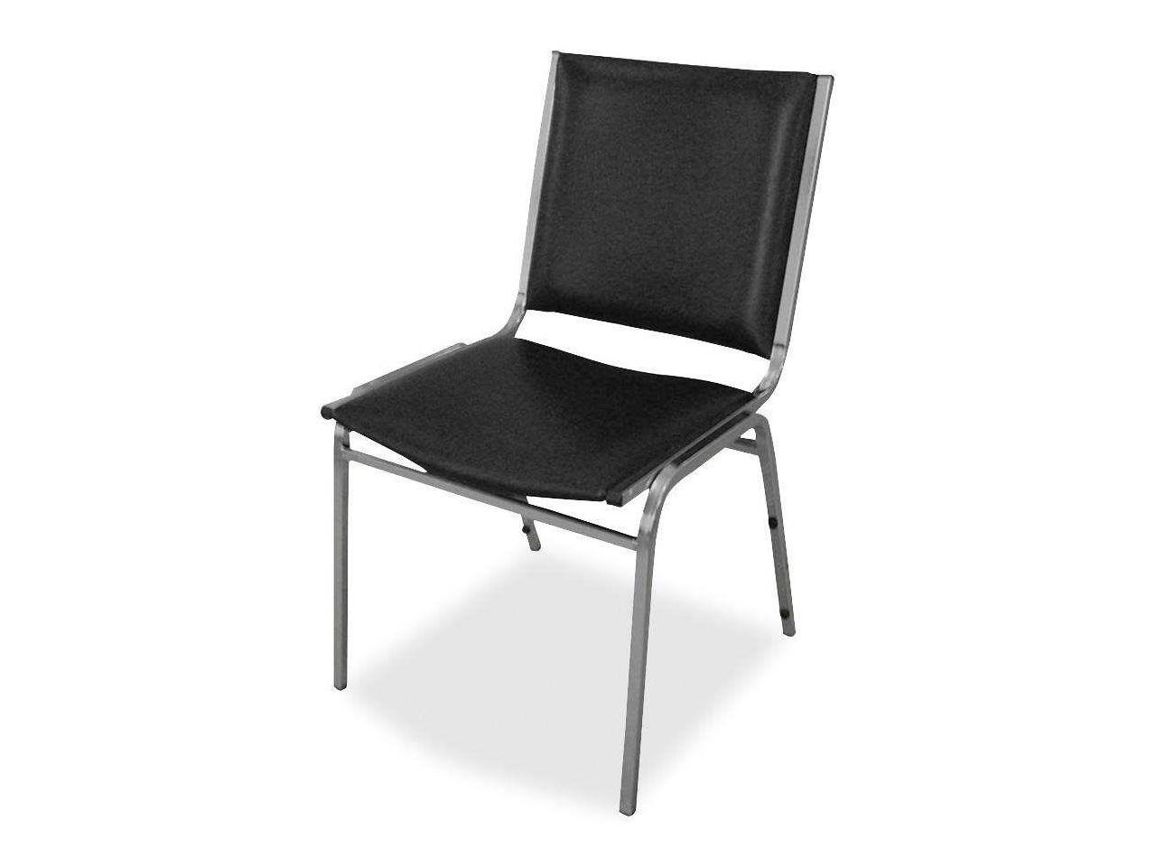 Stacking chairs with no arms feature padded vinyl on the seats and square backs. Sturdy, 7/8" tubular steel frame on each chair holds up to 250 lb. Chairs stack up to eight high.