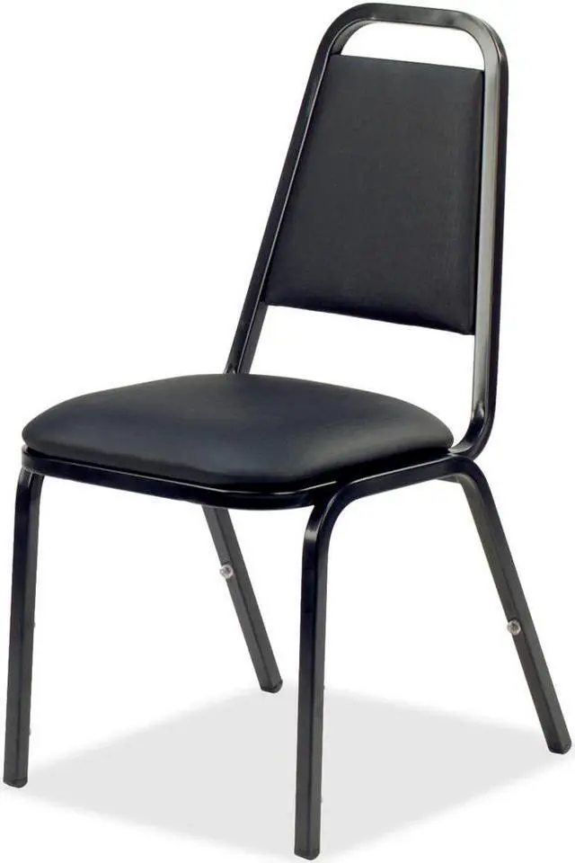 Stack chairs are designed for reliable multipurpose use in almost any setting. Each chair is upholstered in black vinyl. Black frame is made with durable, 7/8" tubular steel to hold up to 250 lb. Design also features a 1-1/2" thick dome seat for added comfort. Chairs stack up to eight high.