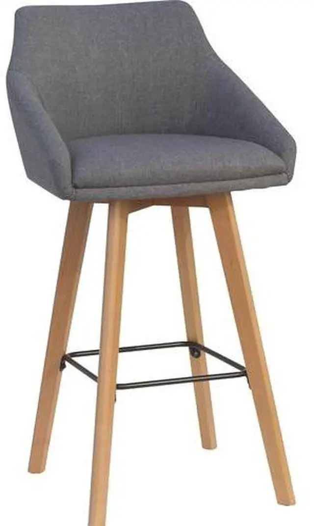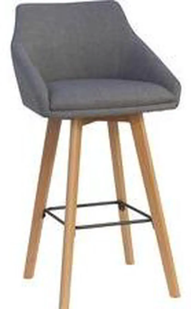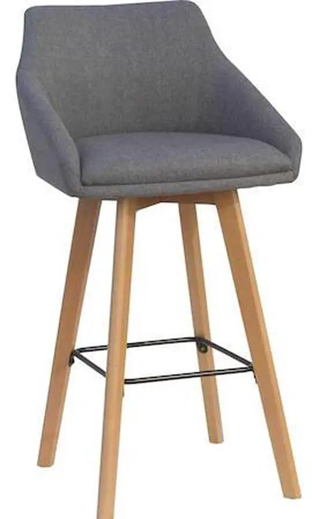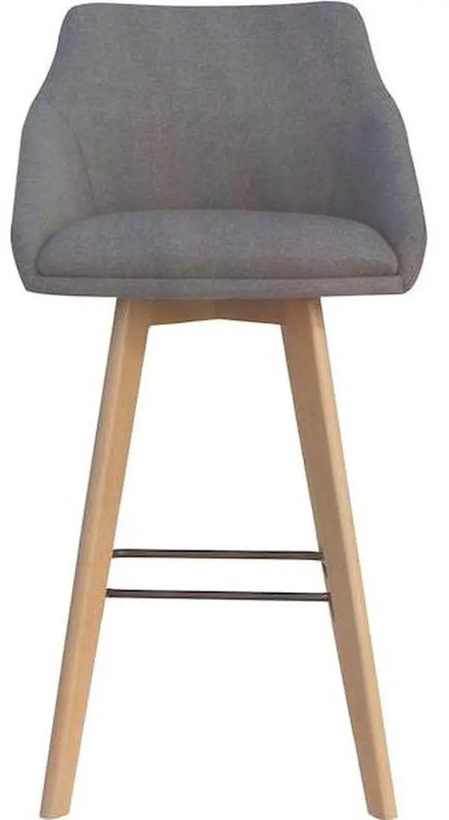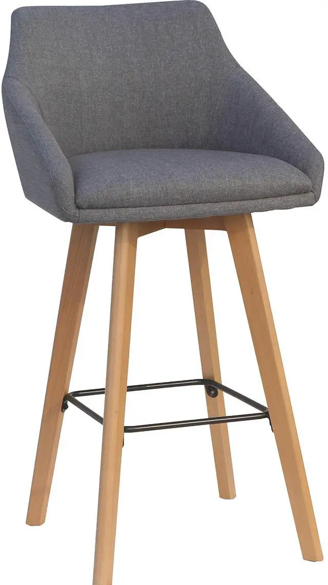 Mid-century modern-inspired guest stool with low-profile arms is upholstered with stylish gray flannel fabric for a professional look. It is perfect for standing-height desks or high tables. Seat and back are cushioned for comfort. Stable base is made with four Beech wood legs with adjustable glides. Guest stool meets or exceeds ANSI/BIFMA standards.