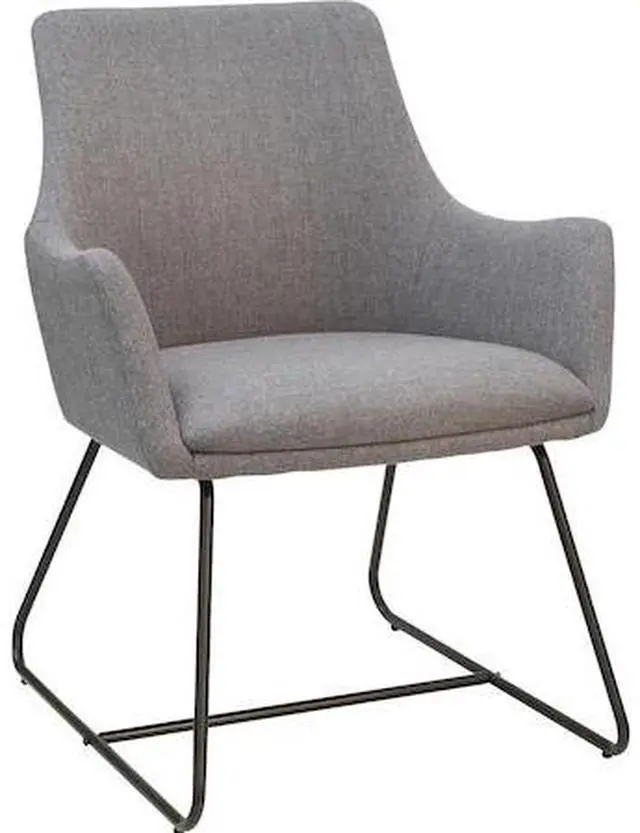 Mid-century modern-inspired guest chair with low-profile arms is upholstered with stylish gray flannel fabric for a professional look. Seat and back are cushioned for comfort. Stable sled base is powder-coated for durability and features adjustable glides. Guest chair meets or exceeds ANSI/BIFMA standards.