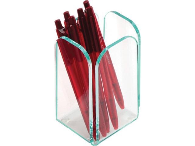 Lorell Transparent Pencil Cup 2-3/4"x2-3/4"x4-3/4" CL/Green 80656