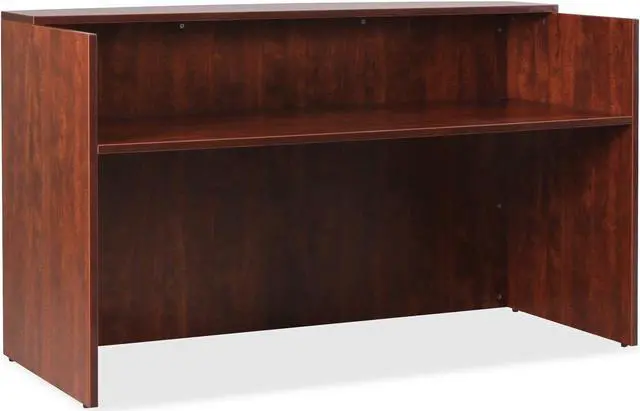 Office furniture offers a high-quality, Cherry laminate construction with metal-to-metal, cam-lock connections. Design includes 3mm PVC edges and adjustable floor guides for stabilization. Furniture has pre-drilled holes with metal inserts for easy attachment by screws of pedestals. Brackets are designed for L-shaped configurations and bridge returns.