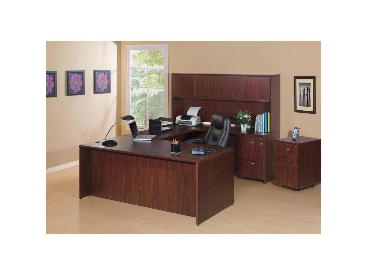 Easily set hutch directly on 66" desks and credenzas with no connections. Constructed of 1" thick, high-quality laminate top with 3mm PVC edges. Overall dimensions: 66" W x 15" D x 42-1/2" H.