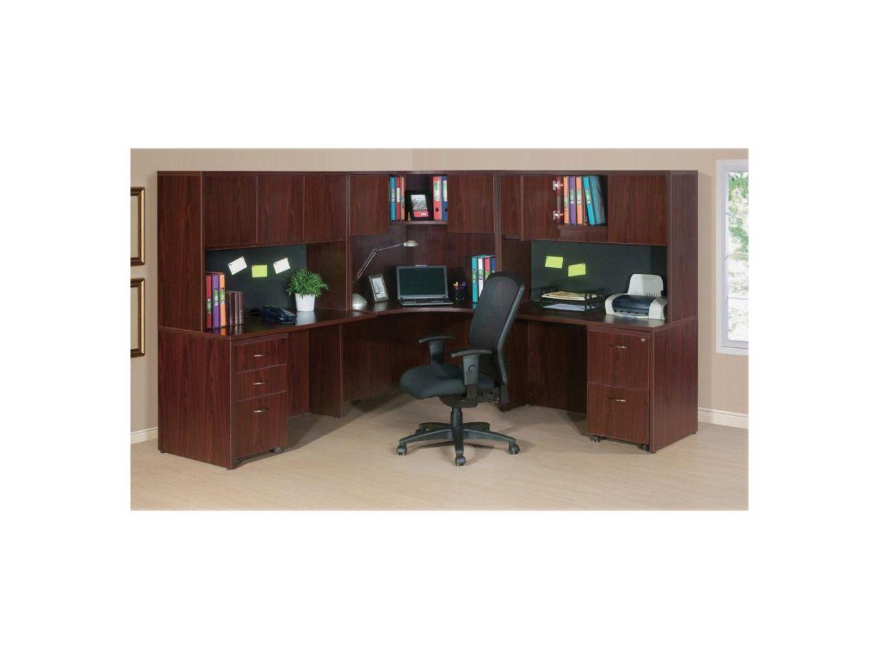 Laminate hutch features two separate storage areas that can be concealed with the doors. Additional storage for a desk or credenza.