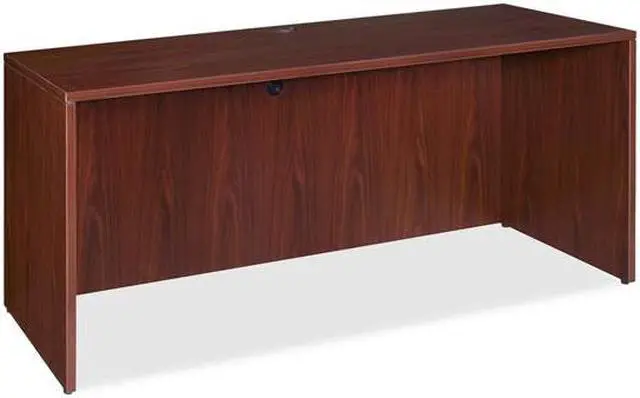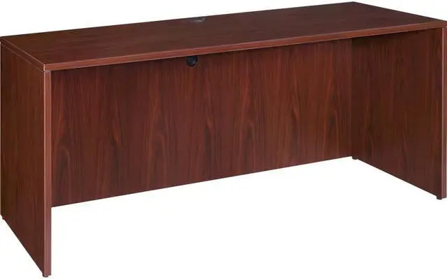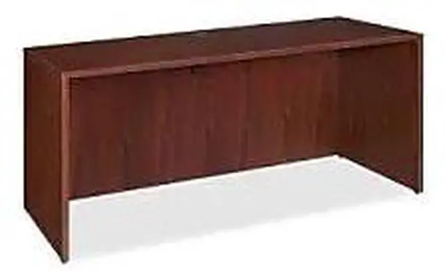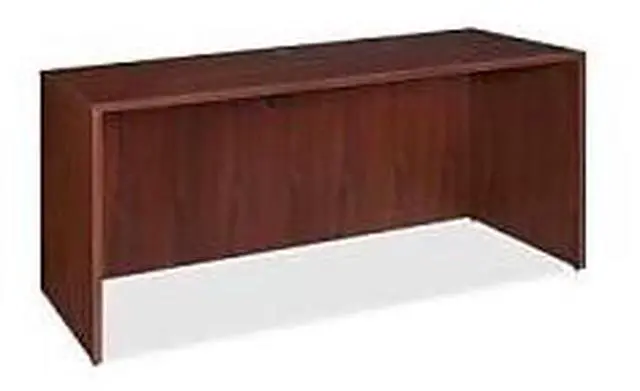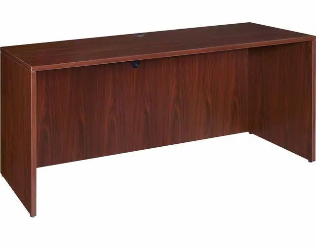 Office furniture offers a high-quality, Mahogany laminate construction with metal-to-metal, cam-lock connections. Design includes 3mm PVC edges and adjustable floor guides for stabilization. Furniture has pre-drilled holes with metal inserts for easy attachment. Brackets are designed for L-shaped configurations and bridge returns.