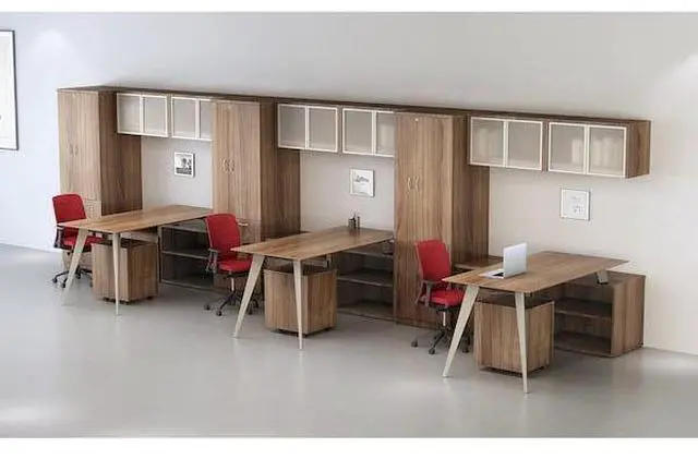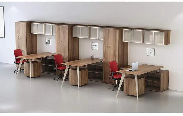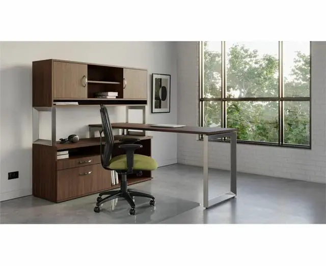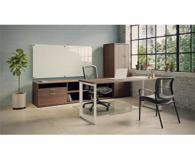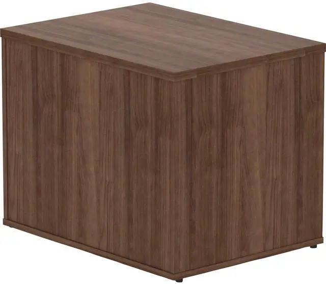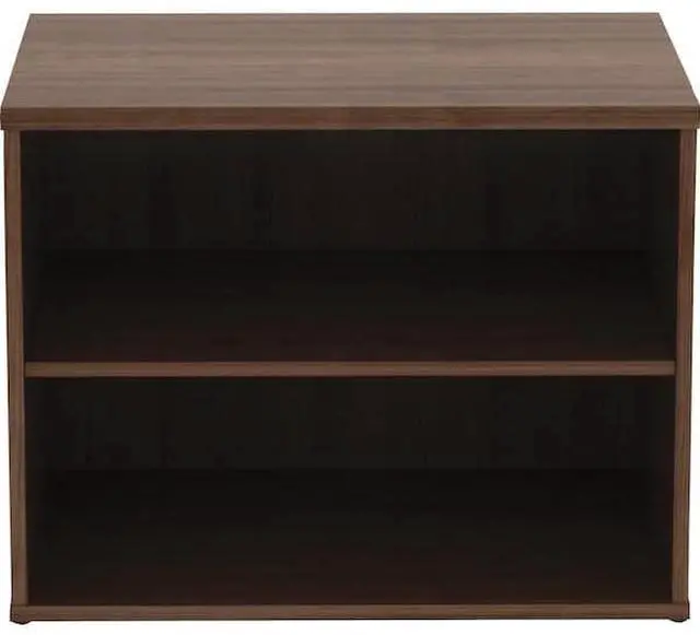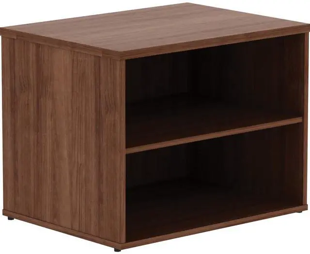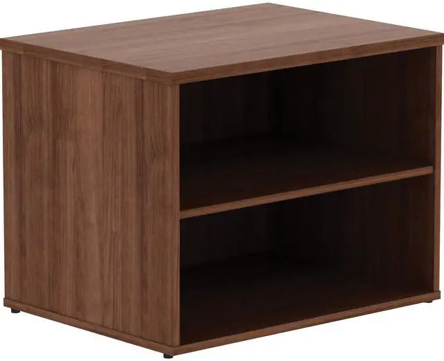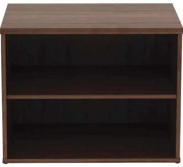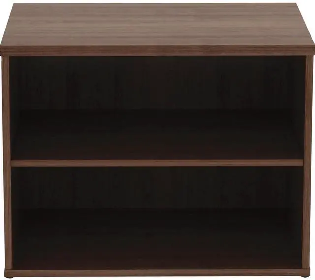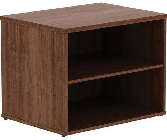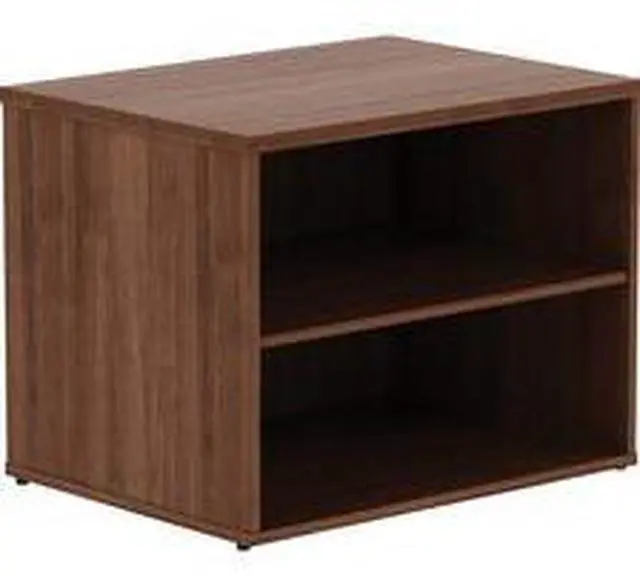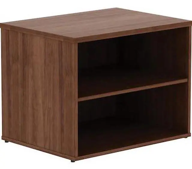 File cabinet credenza without doors is part of the Lorell Relevance Series, versatile and stylish office furniture that configures to meet your needs. Walnut laminate exterior matches other units in the series for a cohesive, professional look. Low cabinet provides two open shelves for flexible storage. Adjustable leveling feet help keep the credenza even on uneven surfaces.