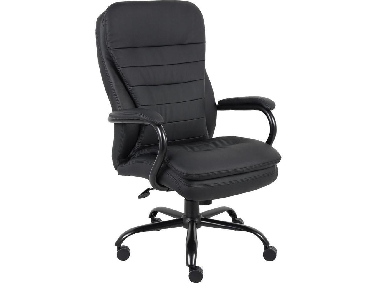 - Loop arms are upholstered in leather. Five-star, 27" metal base offers 3" double-wheel casters for easy chair movement. Durable construction with reinforced leather.