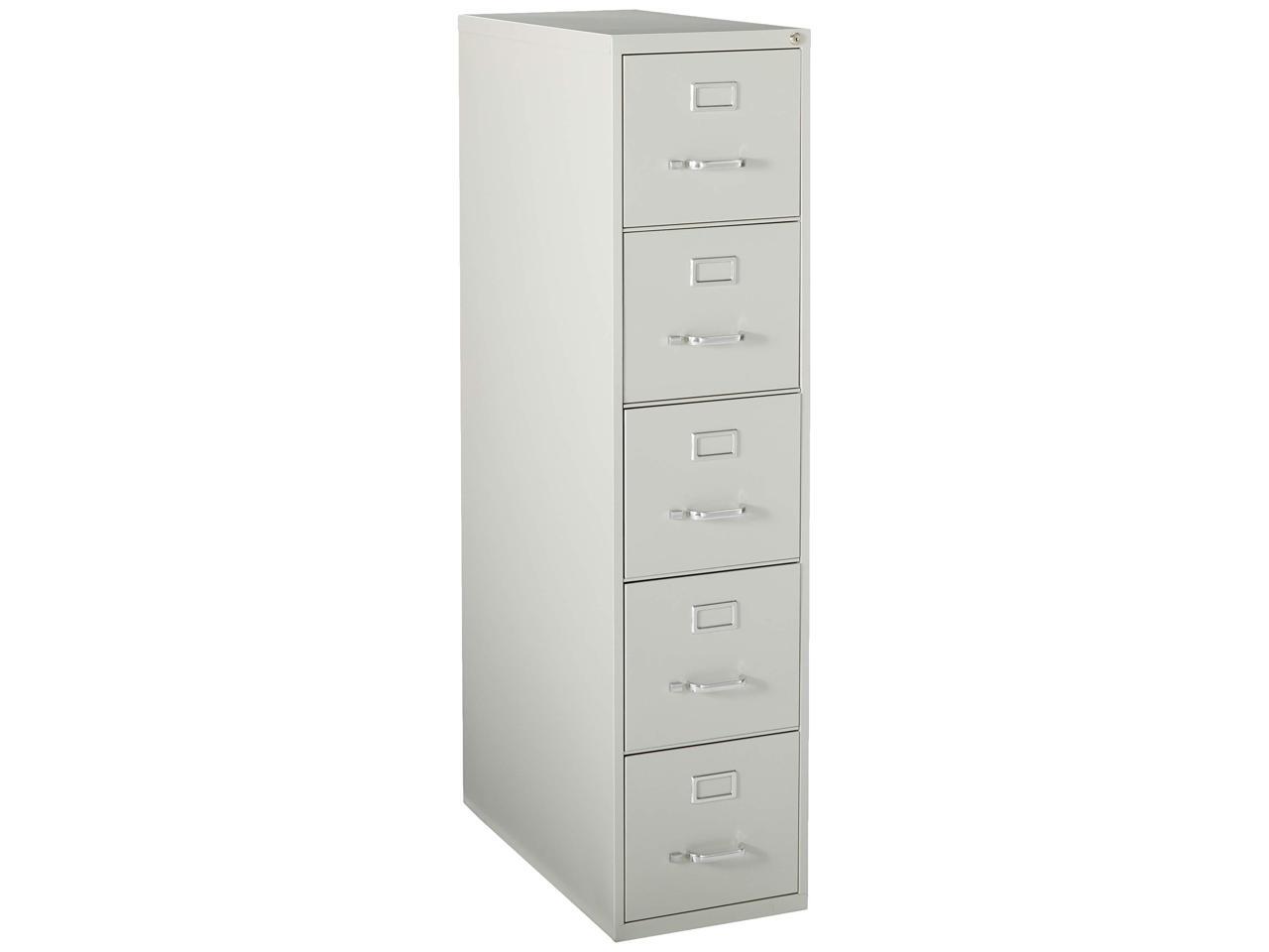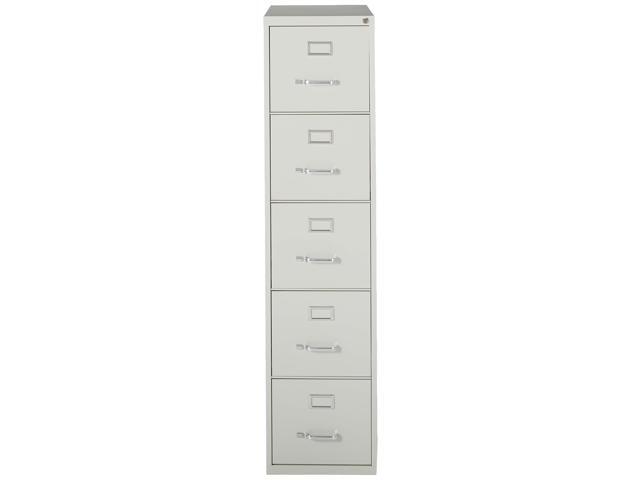 - 15" x 26.5" x 61" - 5 x Drawer(s) for File - Letter - Vertical - Security Lock, Ball-bearing Suspension, Heavy Duty - Light Gray - Steel - Recycled