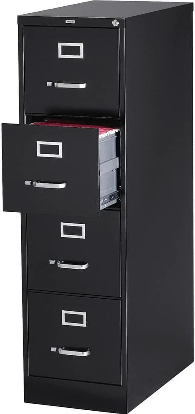Lorell 4-Drawer Vertical File, w/ Lock, 15"x26-1/2"x52", Black