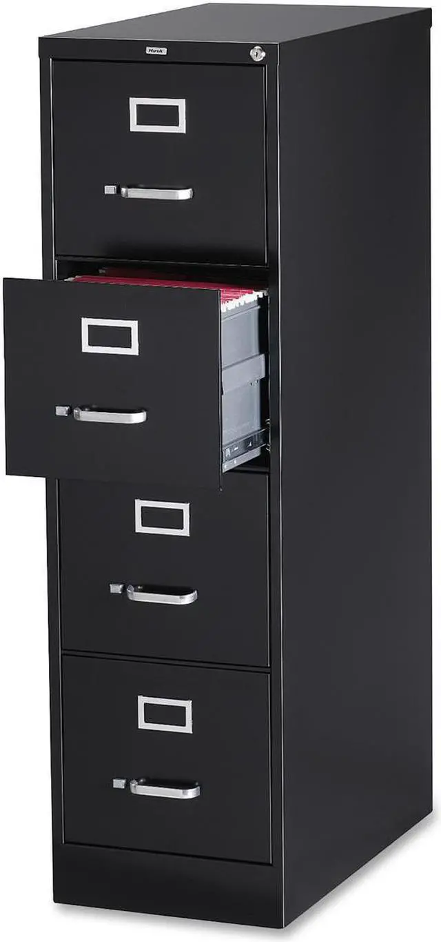 Lorell 4-Drawer Vertical File w/ Lock 15"x26-1/2"x52" Black 60191