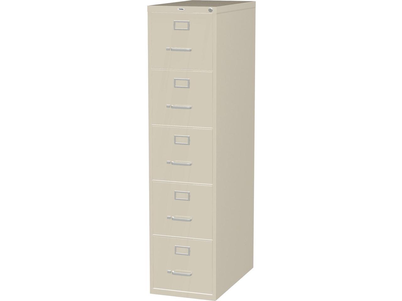 - 15" x 26.5" x 61" - 5 x Drawer(s) for File - Letter - Vertical - Ball-bearing Suspension, Heavy Duty, Security Lock - Putty - Steel - Recycled