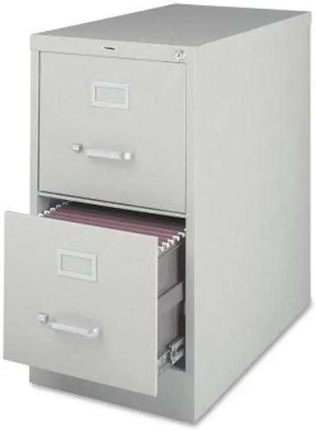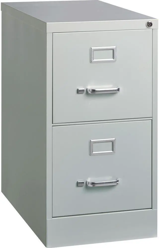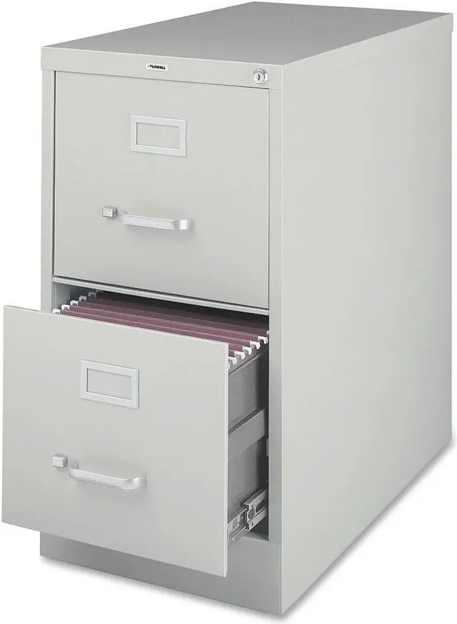 Lorell 2-Drawer Vertical File, w/ Lock, 15"x25"x28-3/8", Light Gray