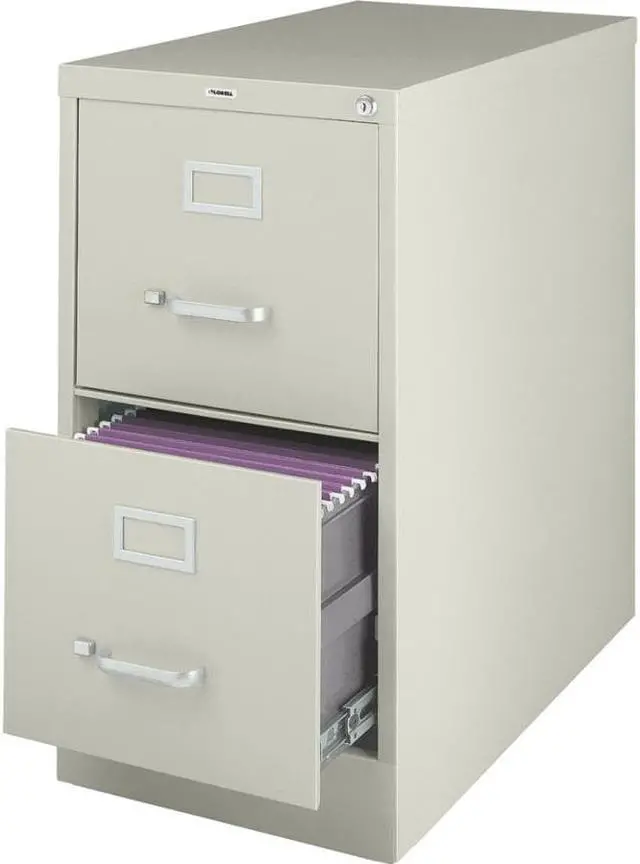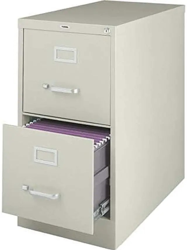 Lorell 2-Drawer Vertical File, w/ Lock, 15"x25"x28-3/8", Putty