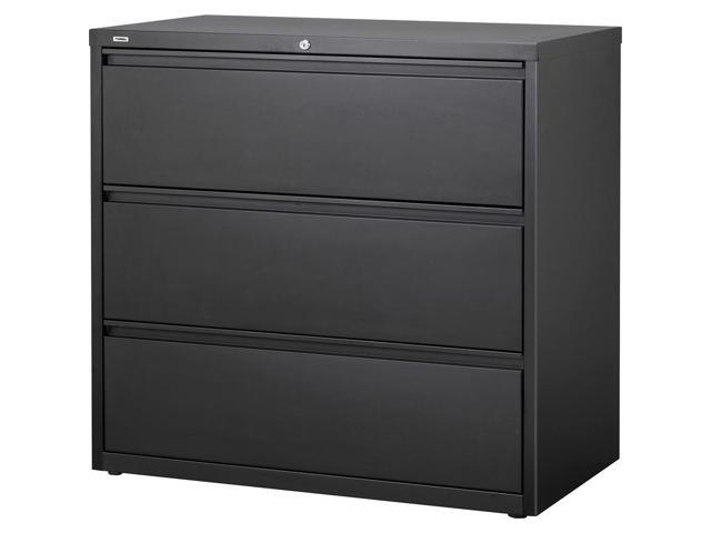 Lorell 3-Drawer Black Lateral Files - 42" x 18.6" x 40.3" - 3 x Drawer(s) for File - Letter, Legal, A4 - Lateral - Locki