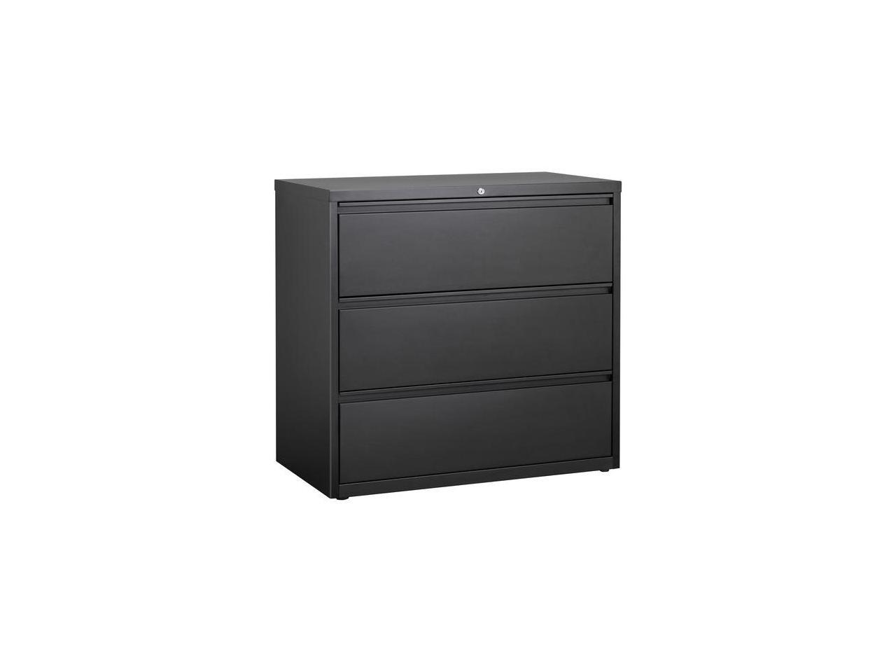 - 42" x 18.6" x 40.3" - 3 x Drawer(s) for File - Letter, Legal, A4 - Lateral - Locking Drawer, Magnetic Label Holder, Ball-bearing Suspension, Leveling Glide - Black - Steel - Recycled