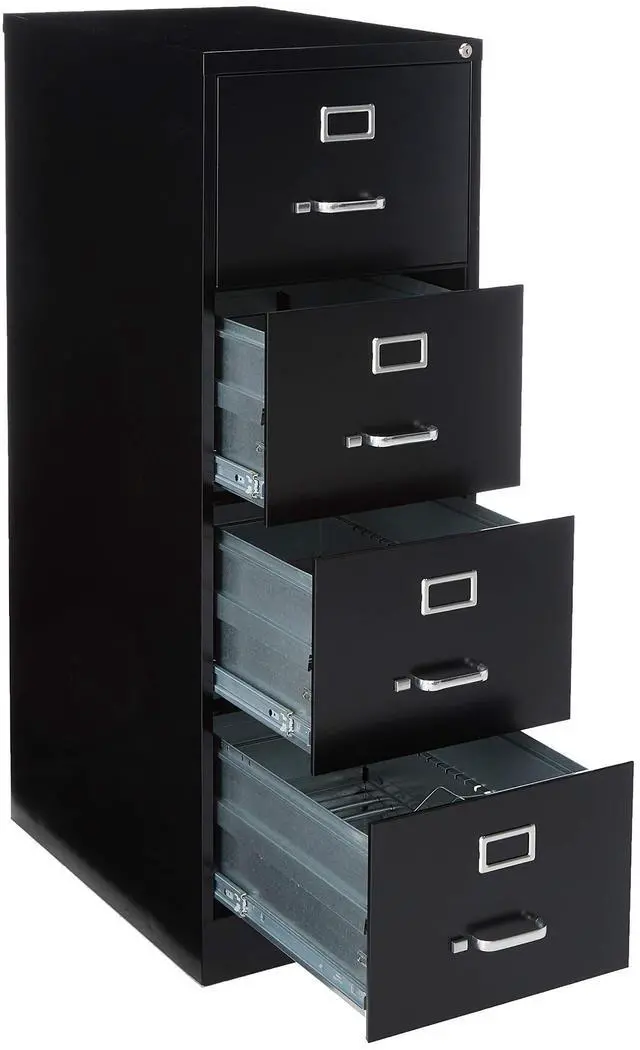 Lorell Vertical File 4-Drawer Legal 18"x26-1/2"x52" Black 60198