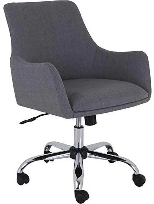 Mid-century modern-inspired task chair with low-profile arms is upholstered with stylish fabric upholstery for a professional look. Seat and back are cushioned for comfort. Functions include adjustable seat height from 18-1/4" to 22-1/4" , 360-degree swivel, tilt tension adjustment and tilt/tilt lock. Chrome steel base is equipped with dual-wheel casters for easy movement.