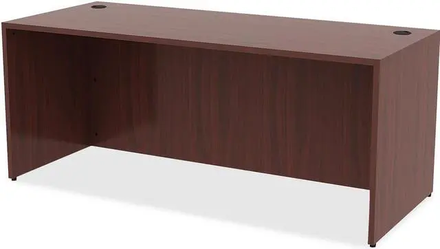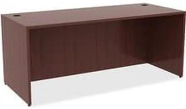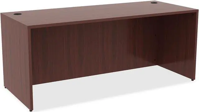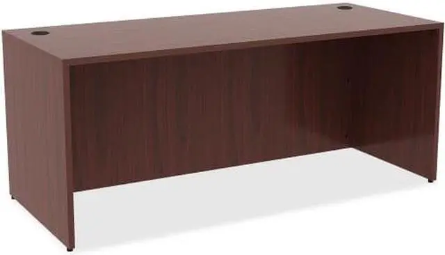 Office furniture offers a high-quality, Mahogany laminate construction with metal-to-metal, cam-lock connections. Design includes 3mm PVC edges and adjustable floor guides for stabilization. Furniture has pre-drilled holes with metal inserts for easy attachment. Brackets are designed for L-shaped configurations and bridge returns.