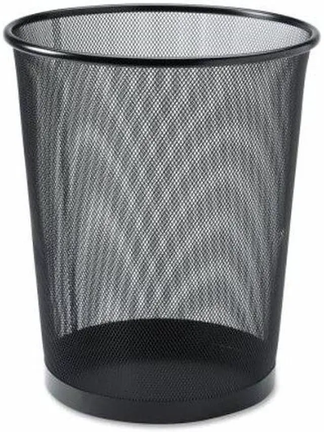 Round waste receptacle is part of the Lorell line of black steel mesh and wire desk accessories. Quality mesh construction has smooth edges and an appealing, powder-coat paint finish to match most office decor.