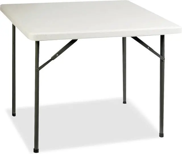 Square banquet table is designed for light-duty use indoors or outdoors. The 1-3/4" thick, square-edge top is made of blow-molded, high-density polyethylene for a sturdy surface. 1" tubular steel legs are powder-coated for durability. Banquet table holds up to 250 lb. evenly distributed.