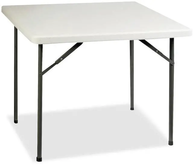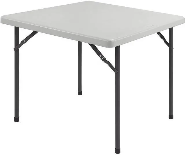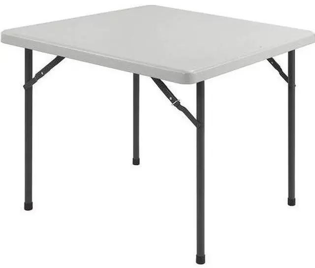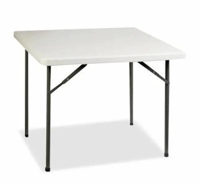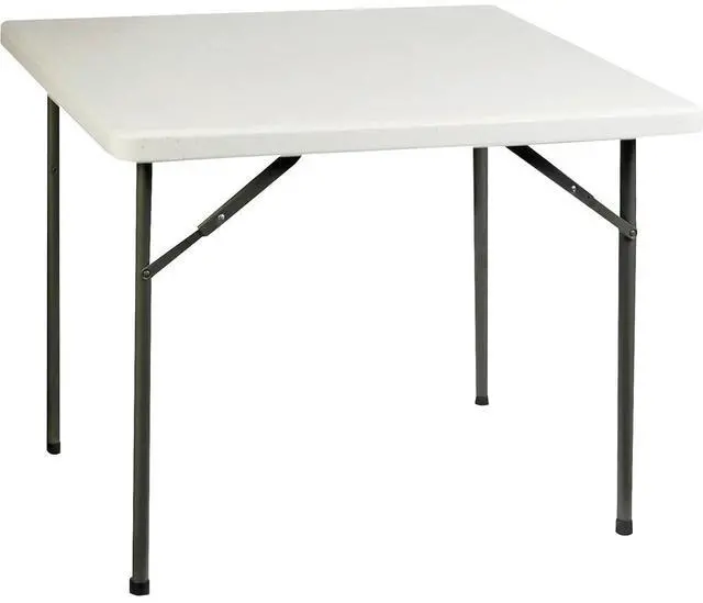 Square banquet table is designed for light-duty use indoors or outdoors. The 1-3/4" thick, square-edge top is made of blow-molded, high-density polyethylene for a sturdy surface. 1" tubular steel legs are powder-coated for durability. Banquet table holds up to 250 lb. evenly distributed.