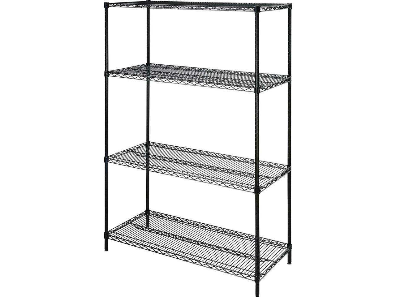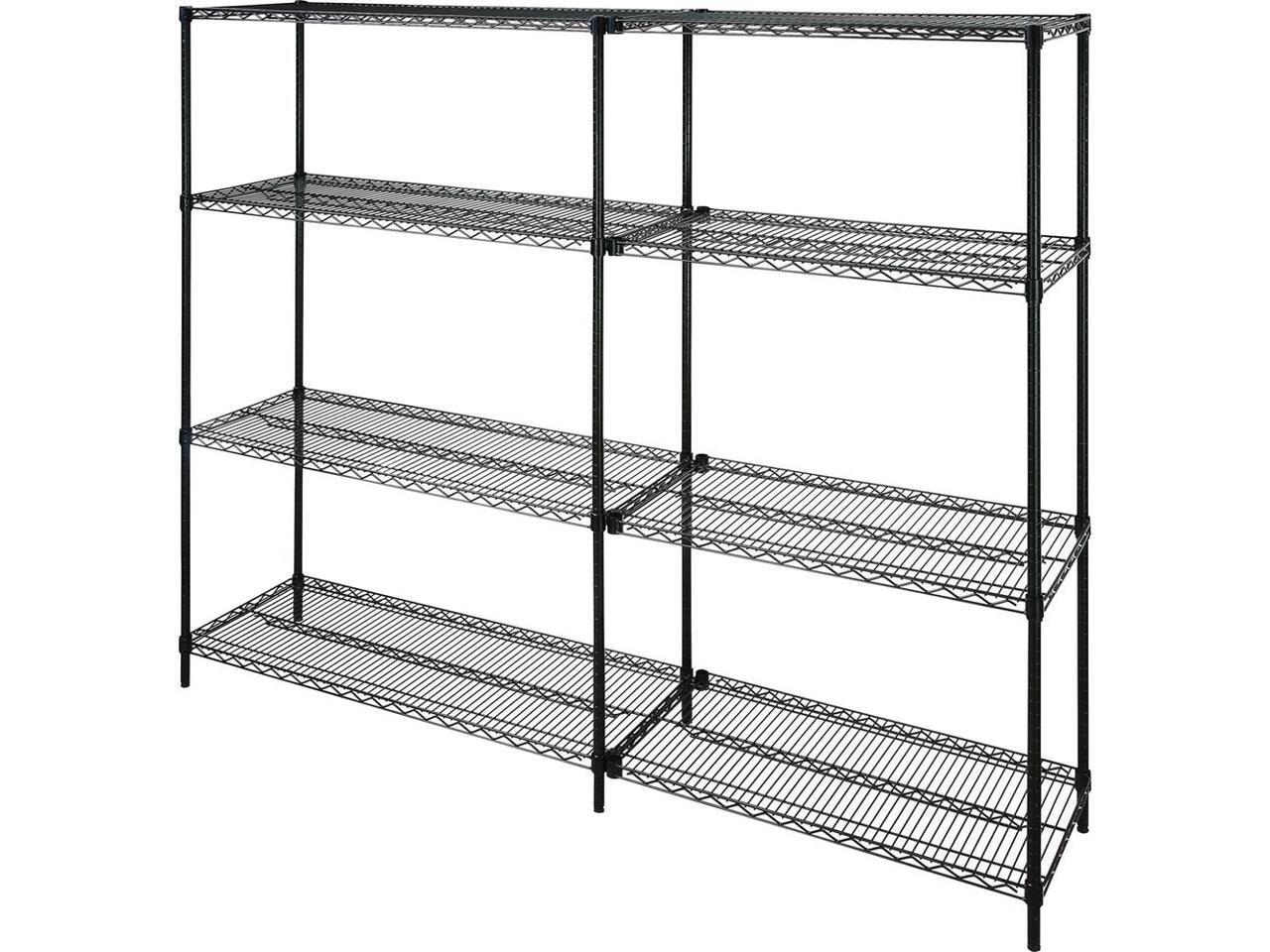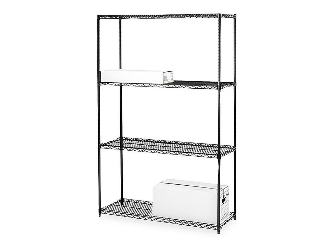 Industrial wire shelving supports up to 1,000 lb. evenly distributed. Each shelf adjusts in 1" increments. Shelving is made of steel with a powder-coat finish, 10-gauge shelf surface...