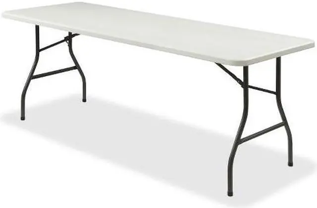 Folding table provides extra tabletop space for meetings, displays or luncheons. It is a lighter than standard solid-core tables for easier portability. Top is made of weight-saving, blow-molded, high-density polyethylene. Heavy-duty, 1" round steel legs are powder-coated to resist rust. The metal support brackets are riveted to the support rails to create a strong frame. Use table indoors or outdoors. Folding table holds 1,000 lb. evenly distributed. It comfortably seats eight.
