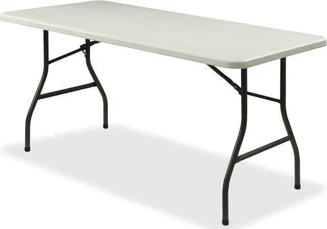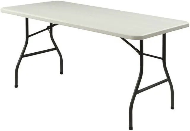 Folding table provides extra tabletop space for meetings, displays or luncheons. It is a lighter than standard solid-core tables for easier portability. Top is made of weight-saving, blow-molded, high-density polyethylene. Heavy-duty, 1"" round steel legs are powder-coated to resist rust. The metal support brackets are riveted to the support rails to create a strong frame. Use table indoors or outdoors. Folding table holds 1,000 lb. evenly distributed. It comfortably seats six.
