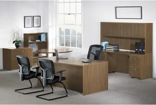 Conference table base is designed for use with Lorell 8' oval, rectangular or boat-shaped conference tabletops in Walnut laminate. Base has a modesty panel, adjustable floor guides and a laminate finish. Each two-panel leg base includes the necessary installation hardware. Cam covers are included for all exposed assembly hardware. Tops and bases are sold separately.