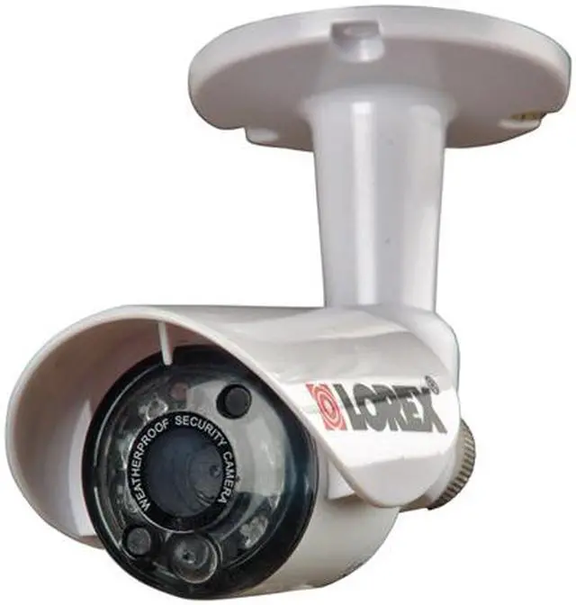 | Features | Durable weatherproof metal camera suitable for indoor/ outdoor installations 6 high intensity IR LEDs provide illumination in no/low light conditions up to 20ft/6m Color video during the day, automatically changes to black& white video in low light Built-in microphone provides audio from the camera to the monitor/television Easily connects to any TV or VCR with RCA A/V inputs Mounts easily to walls or ceilings |