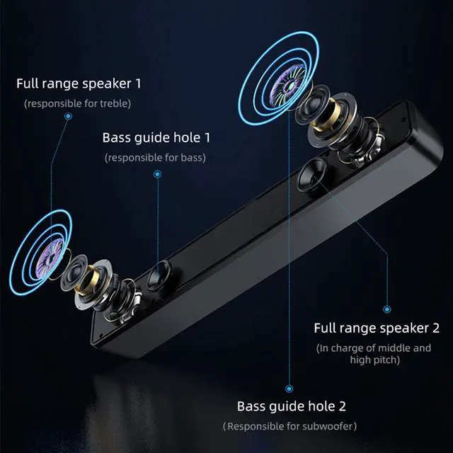 This desktop speaker has built-in speakers and diaphragm for HiFi sound quality. The combination of speakers and double diaphragm creates a stunning sound effect that takes you to the cinema.