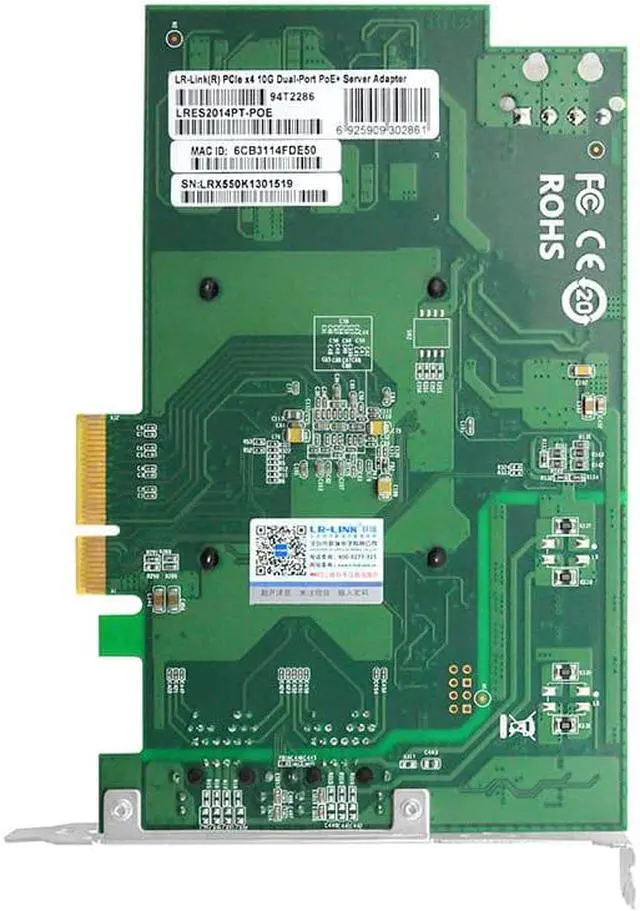 LRES2014PT-POE is a dual-port copper cable 10G Ethernet PCIe X4 PoE+ Ethernet image acquisition card independently developed by Shenzhen Liangrui Electronics Co., Ltd. based on Intel master control scheme, compatible with PCIe X8 and X16 channels at the same time. The acquisition card is mainly used in industrial field visual inspection servers and equipment, visual field clients, fast mobile Ethernet data transmission equipment, etc., and is also applicable to ordinary servers.