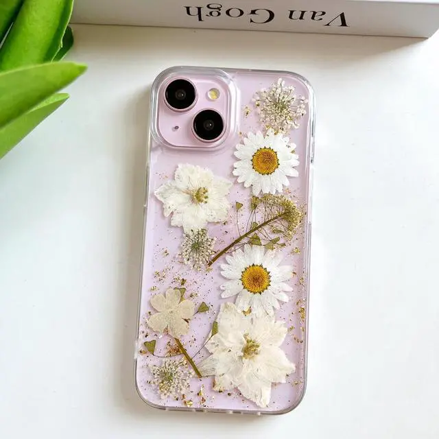 LSEEKA Original Design Real Flower Case for iPhone iPhone 13/ iPhone 14/ iPhone 15