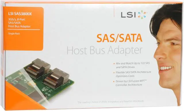 | Features | Full-height HBA (2) x4 external SFF-8470 connectors Connects to both SAS and SATA HDDs and tape drives Allows more than 122 total end-point devices Fusion-MPT architecture provides more than 140,000 I/Os per second Supports all major operating systems |
