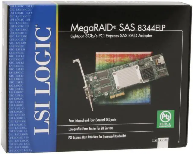 | Features | Eight SAS/SATA ports 3 Gb/s throughput per port Greater than 2TB array support Intel IOP333 I/O Processor PCI Express, x4 lane width 128MB DDR Cache Optional remote battery backup Auto-resume on array rebuild and reconstruction Advanced data integrity and recovery Enhanced error handling and reporting Online Capacity Expansion (OCE) Online RAID Level Migration (RLM) Comprehensive management and configuration utilities Full SAS expander support (32 disk support) |