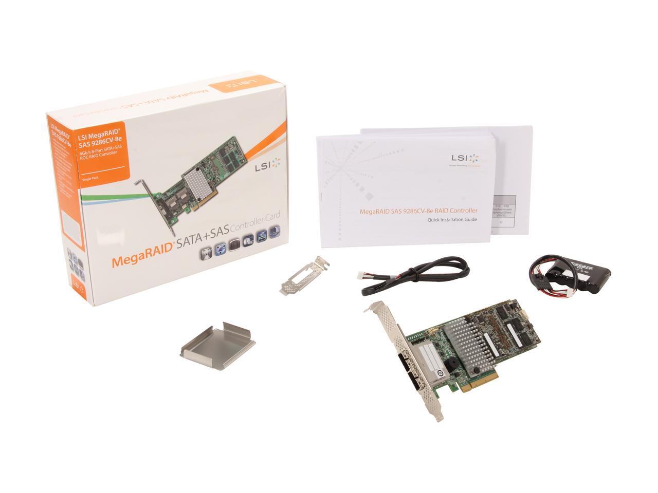 LSI MegaRAID LSI00333 (9286CV-8e) PCI-Express 3.0 x8 Low Profile SATA / SAS RAID Controller - Single--Avago Technologies