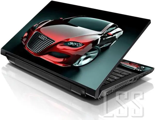 LSS 15 15.6 Inches Laptop Notebook Skin Sticker with 2 Wrist Pads - Reusable Cover Protector Vinyl Sticker Cover Decal Fits 13" - 16" - Red Audi Car Pattern