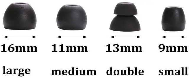4 types of eartips, small (9mm), medium (11 mm), large (13 mm) and double flange (13mm), can meet your different needs