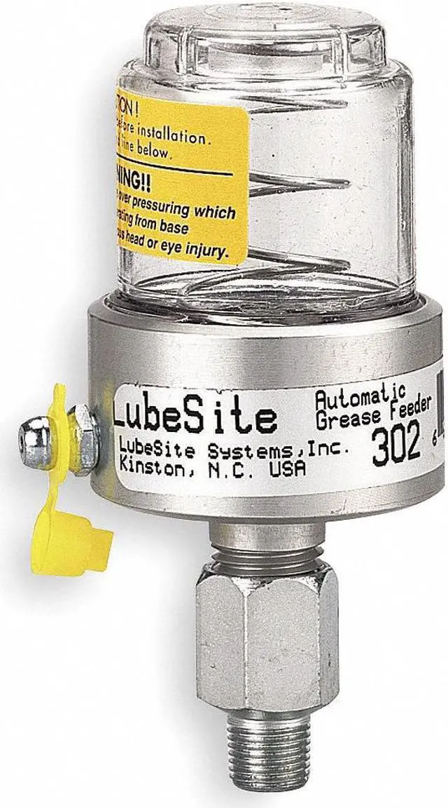 Grease Feeder, Included Grease Type Not Applicable, Lubrication Point Type Single, Feeder Capacity 1 fl oz, Operating Temperature - Minimum -10 Degrees F, Operating Temperature - Maximum 250 Degrees F, Spring Force 23.3 psi, Connection Size 1/8 in, Pre-Filled Status Not Applicable, Connection Type NPT, Feeder Material Aluminum, Flow Rate Adjustability Non-Adjustable, Delivery Method Continuous, Includes Springs, Refillable Yes, Grease Color Red, Overall Diameter 1 3/4 in, Overall Height 3 5/8 in. This item has been restricted from sale in the following state (s): []